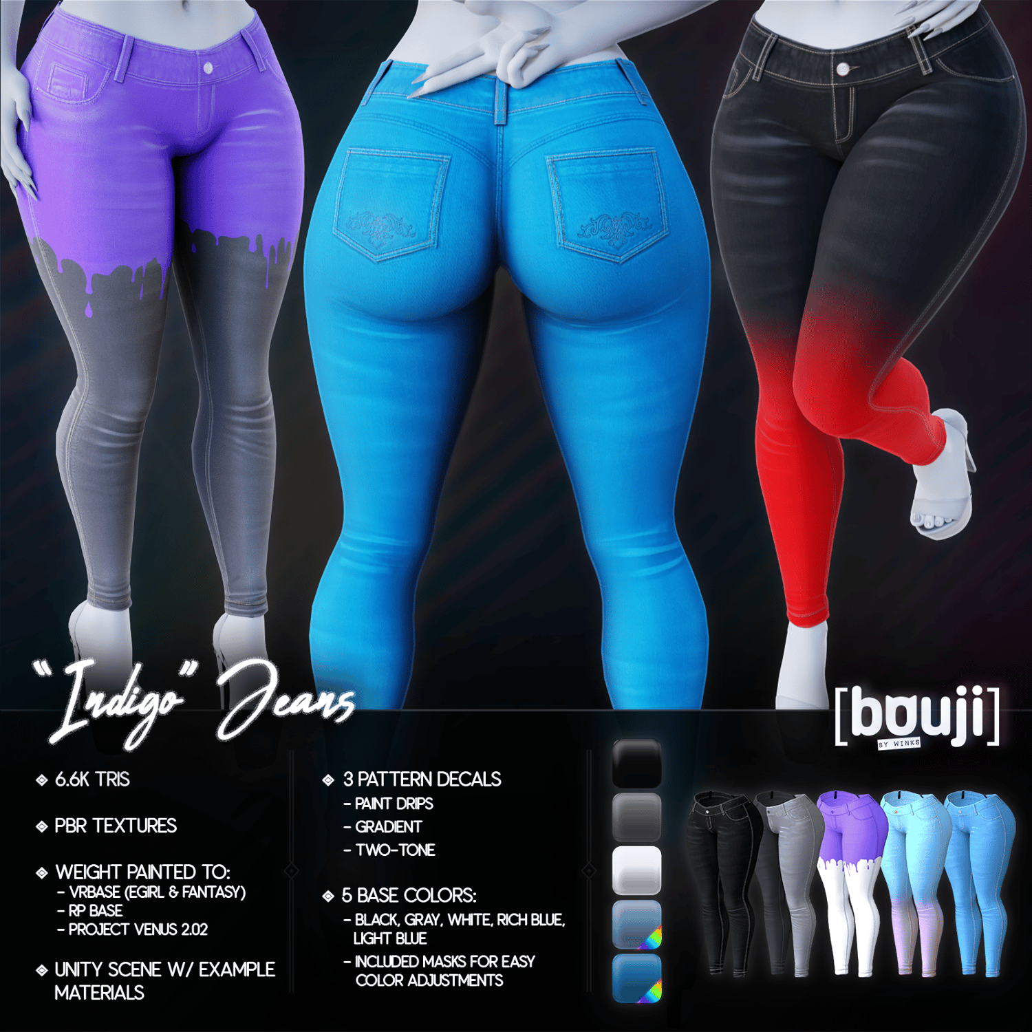 ✦ YOU MUST adhere to the restrictions of which ever license you buy. (e.g. Don't buy a personal license and put the asset on a commercial model)