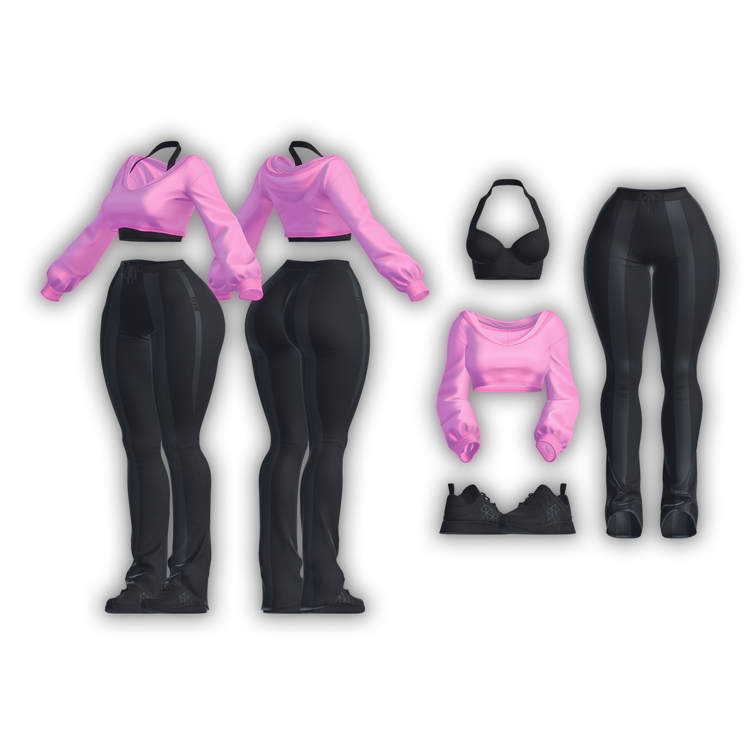 ◈ The outfit mesh is TRIANGULATED in order to preserve correct texture mapping across the UV and so that the shape keys are preserved upon export to .fbx. You can always find the non-triangulated versions of any of my products by using the included blender project file. Though you will then be responsible for getting around exporting a mesh with shape keys present. I recommend this tool for such occasions